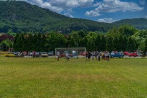 Csobánkán kapura rúgás volt a feladat, amit Tóth Péter helyi lakos koordinált. Az aszfaltos kézilabdapályán parkoló autókat sok helybeli érdeklődő nézhette meg közelről, amíg a sofőrök a kapura rúgással voltak elfoglalva.