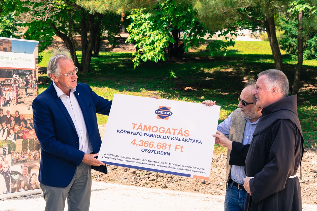 Június 8-án délelőtt átadták a Dévai Szent Ferenc Alapítvány által működtetett csobánkai Élet Háza újonnan kialakított parkolóját, és a parkolót az épülettel összekötő utat. A fejlesztés a Swietelsky Magyarország Kft. 4 366 681 Ft-os támogatásából valósult meg, az alapítványnak nem kellett anyagilag hozzájárulni a munkálatokhoz. A támogatást jelképező táblát Hegyi Zoltán, a vállalat ügyvezetője adta át Böjte Csaba alapítónak és Vásárhelyi Tamásnak, az alapítvány kuratóriumi elnökének. A kuratóriumot Dr. Juharos Róbert képviselte még, a Swietelsky másik ügyvezetője, Bognár Árpád is eljött, és meghívást kapott Völgyes József, Csobánka polgármestere is az ünnepségre.
