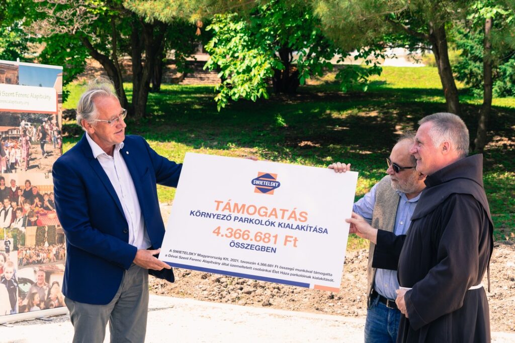 Június 8-án délelőtt átadták a Dévai Szent Ferenc Alapítvány által működtetett csobánkai Élet Háza újonnan kialakított parkolóját, és a parkolót az épülettel összekötő utat. A fejlesztés a Swietelsky Magyarország Kft. 4 366 681 Ft-os támogatásából valósult meg, az alapítványnak nem kellett anyagilag hozzájárulni a munkálatokhoz. A támogatást jelképező táblát Hegyi Zoltán, a vállalat ügyvezetője adta át Böjte Csaba alapítónak és Vásárhelyi Tamásnak, az alapítvány kuratóriumi elnökének. A kuratóriumot Dr. Juharos Róbert képviselte még, a Swietelsky másik ügyvezetője, Bognár Árpád is eljött, és meghívást kapott Völgyes József, Csobánka polgármestere is az ünnepségre.