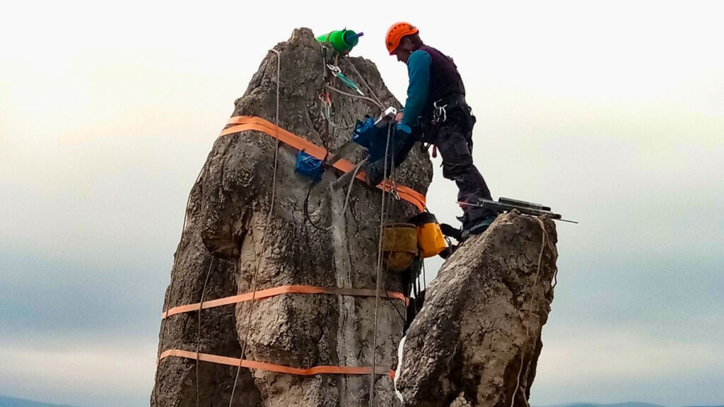 Az iparialpinisták a munkálatok során különösen nagy figyelmet fordítottak a természeti értékek megóvására. Az anyagokat serpa-módszerrel, háton vitték fel a toronyhoz és ott biztonságosan tárolták, kezelték. A munka során speciális eszközöket – többek között vízhűtéses kőzetfúrót – alkalmaztak annak érdekében, hogy kíméljék a sziklát.