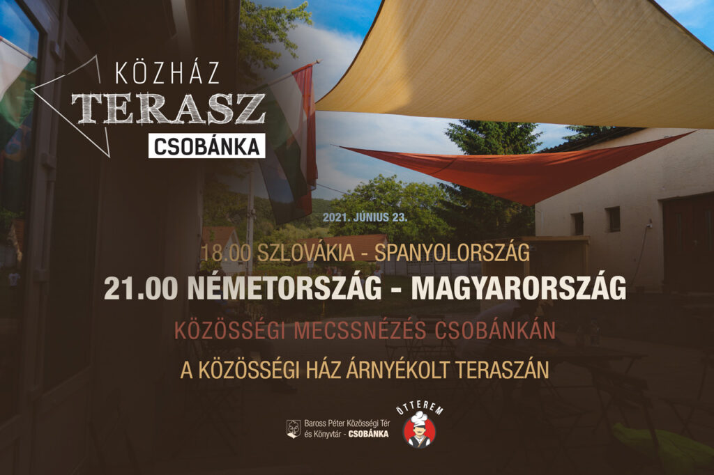 Ha Önök nem utaztak el Münchenbe, és nincs kedvük otthon nézni meccset, akkor látogassanak el a Baross Péter Közösségi Tér teraszára, ahol közösségi meccsnézés keretében szurkolhatnak a magyar válogatott továbbjutásáért.