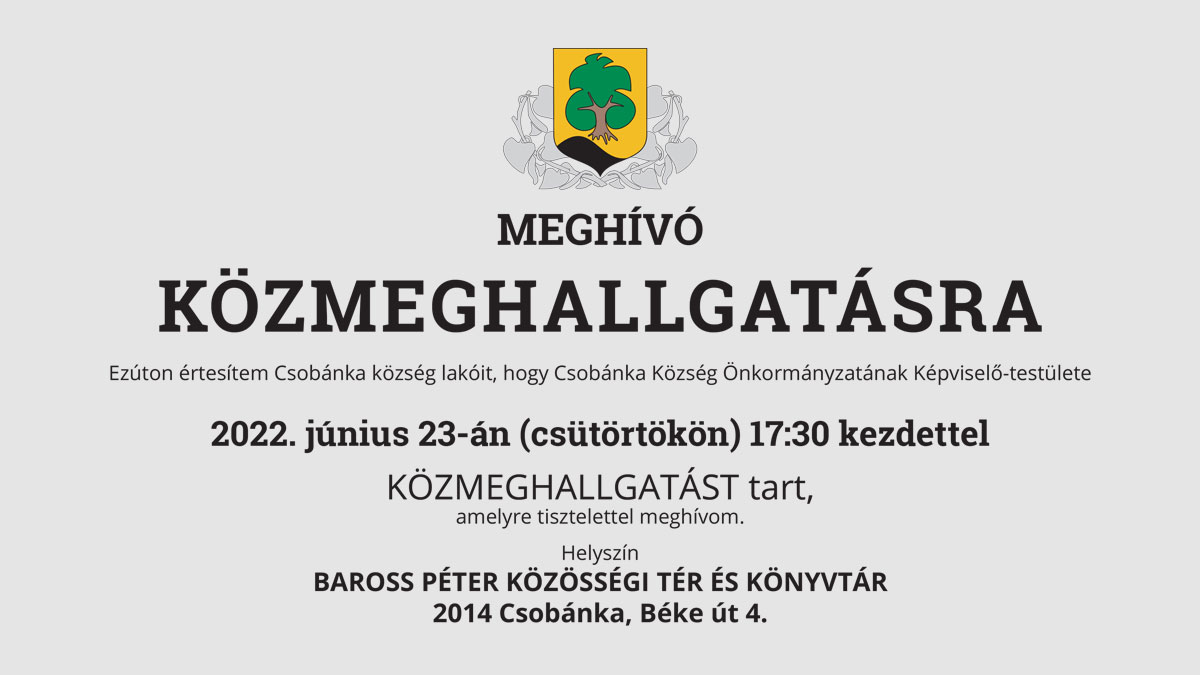 Június 23-án közmeghallgatást tart az önkormányzat. A COVID-járvány miatt hosszú ideig nem lehetett ilyen közéleti eseményeket rendezni, de a veszélyhelyzet feloldásával megnyílt a lehetőség a lakosság előtt, hogy személyesen is megossza javaslatait a település vezetőivel, képviselőivelőivel, és kérdéseket intézzen hozzájuk.