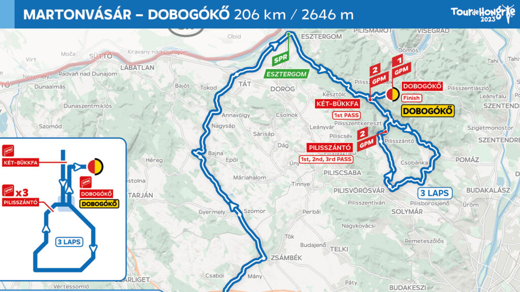 A királyetapon, a martonvásári rajt után északnak tartva Biatorbágy, Etyek, Felcsút, Zsámbék és Tát érintésével jut el Esztergomba a mezőny. Ezután fordulnak délnek a versenyzők, hogy a Pilisszentkereszt elérése után három kört is megtegyenek a Pilis csúcsai között. A befutó a harmadik kör végén Dobogókőn lesz, ami a verseny történetében először lesz hegyi befutó házigazdája.