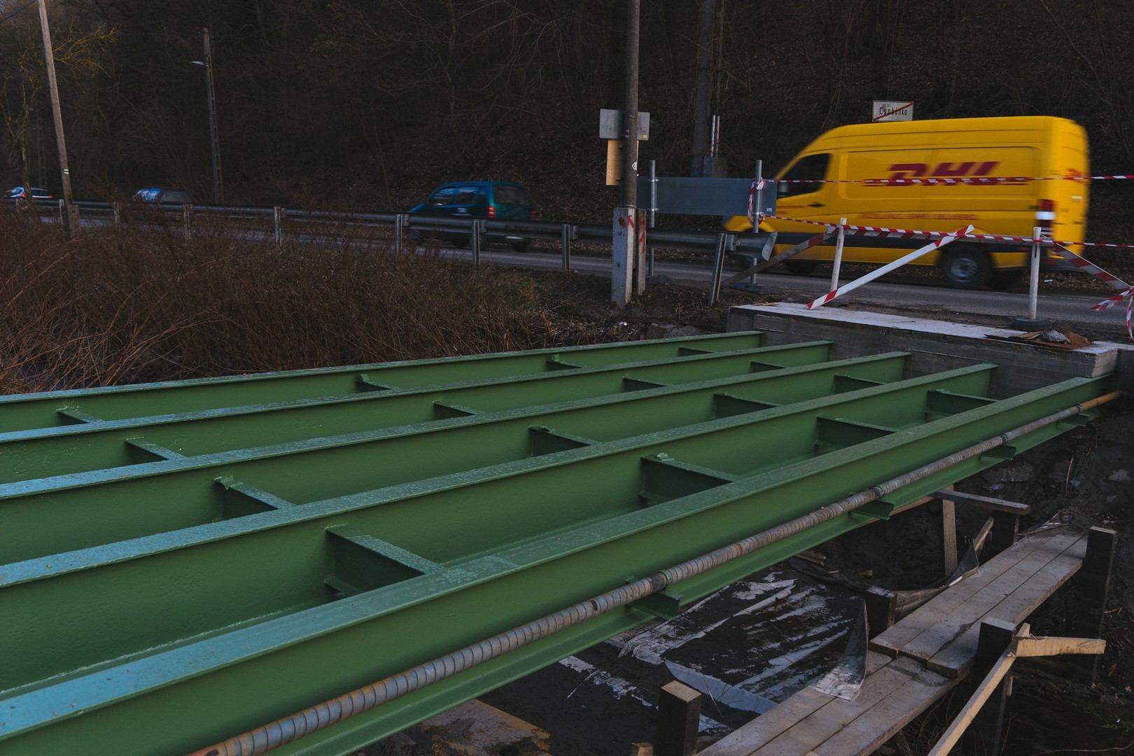A tervek szerint halad a Nádas utcát a Fő úttal összekötő híd felújítása. Korábban a régi hidat a vasszerkezetig visszabontották, a fém részeket felületkezelték. A napokban kezdte meg a Szomolyai Fűrészüzem a híd faszerkezetének felépítését, amit erős fém pántokkal rögzítettek a patak felett átívelő gerendákhoz. A mai napon már a híd korlátja is a helyére került. Rövidesen sor kerül a híd járófelületének rögzítésére is, azután már csak a két úthoz való csatlakozás kiépítése lesz hátra az átadásig.
