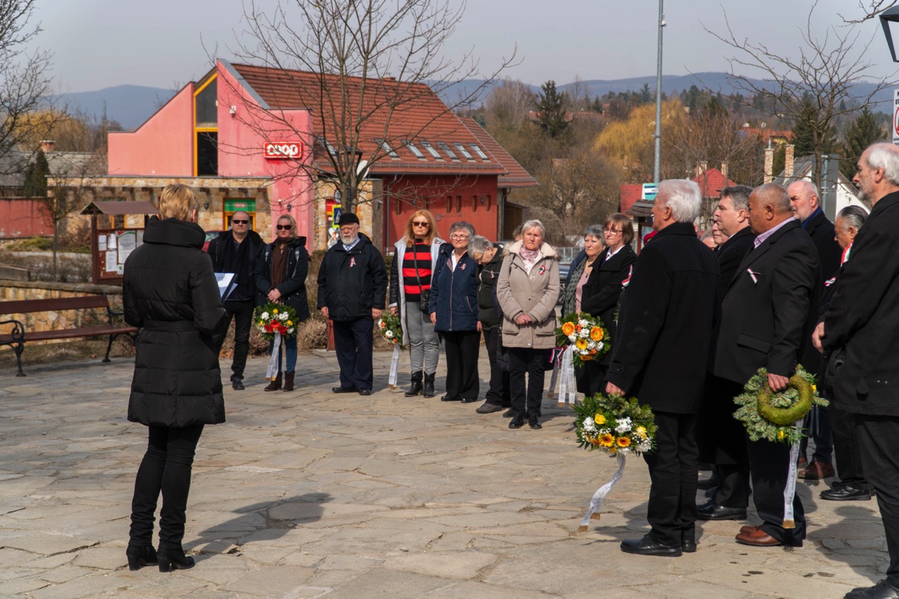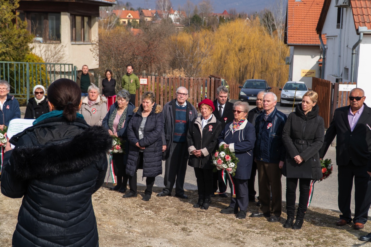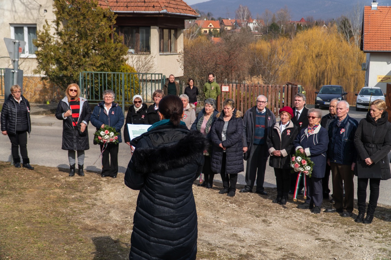 Az eredeti tervek és a hagyomány szerint a csobánkai iskola diákjainak műsorával ünnepelhettük volna március 15-ét a közösségi házban, de sajnos betegség miatt az iskola kénytelen volt lemondani az eseményt a múlt hét végén, ezért a Béke út és a Vörösvári út találkozásánál lévő 1848-as emlékműnél zajlott le a megemlékezés. Itt hangzott el Kovács Vanda Csobánkán élő színművész rövid irodalmi műsora és itt osztotta meg nemzeti ünnepünkkel kapcsolatos gondolatait a hallgatósággal Völgyes József polgármester is. A rövid megemlékezés után koszorúkat helyeztek el a résztvevők az emlékműnél.