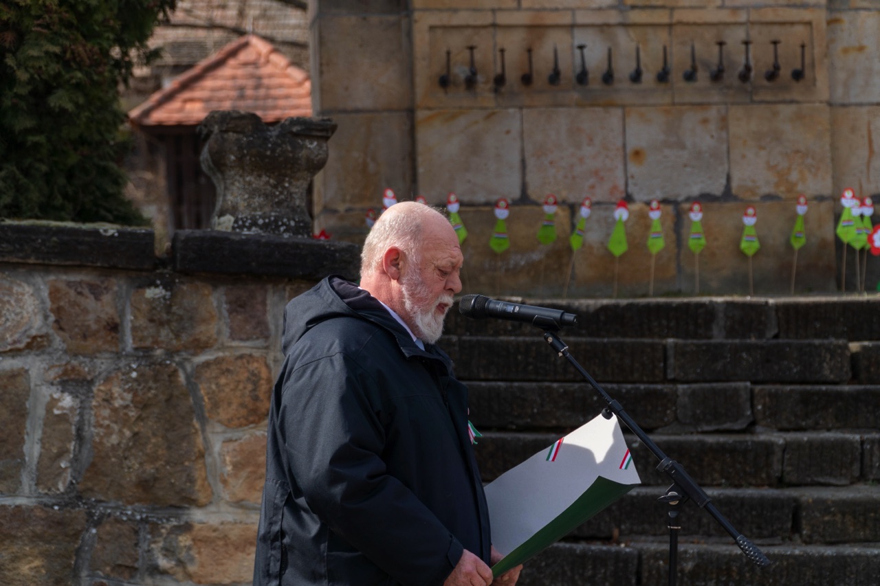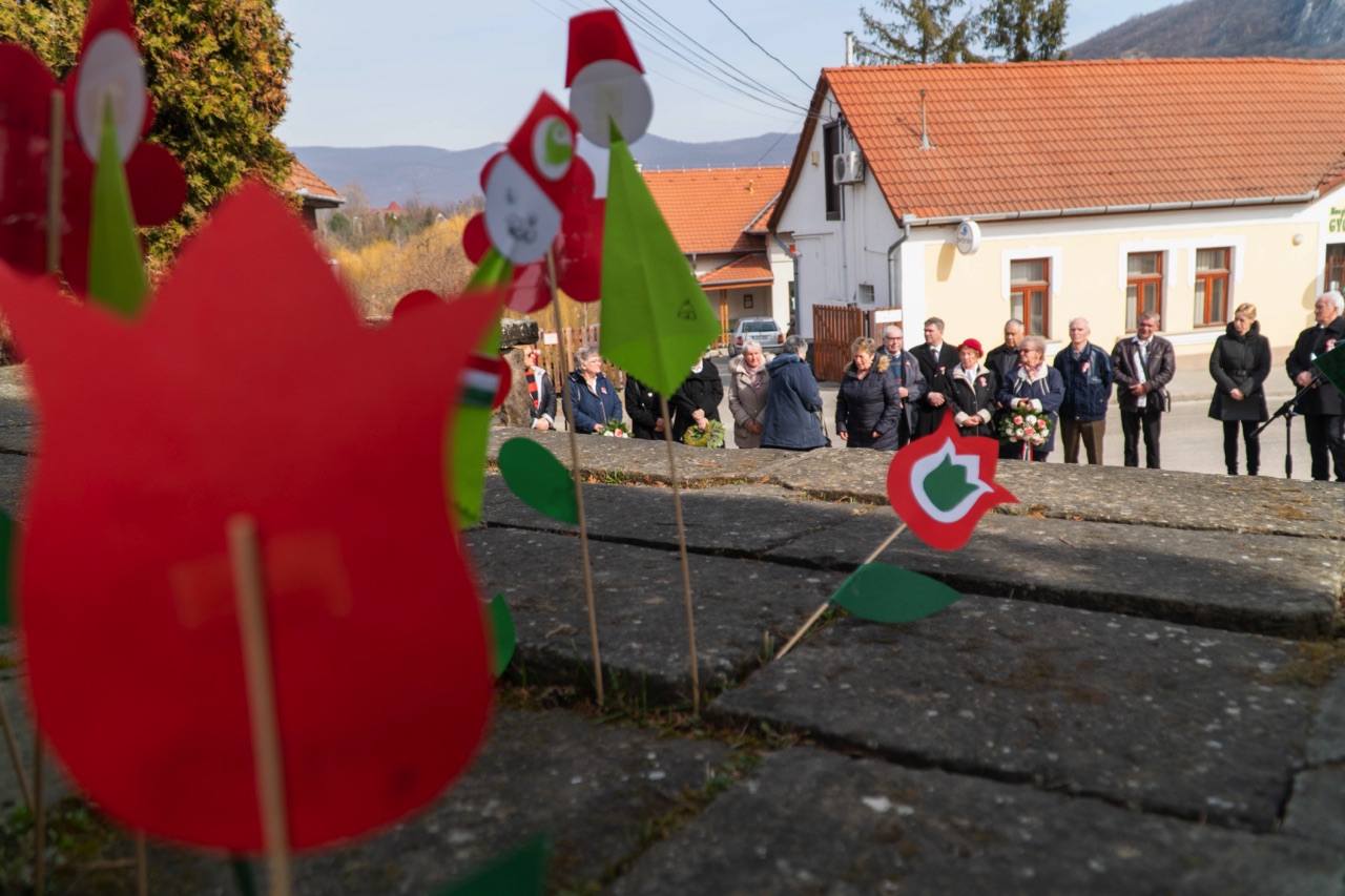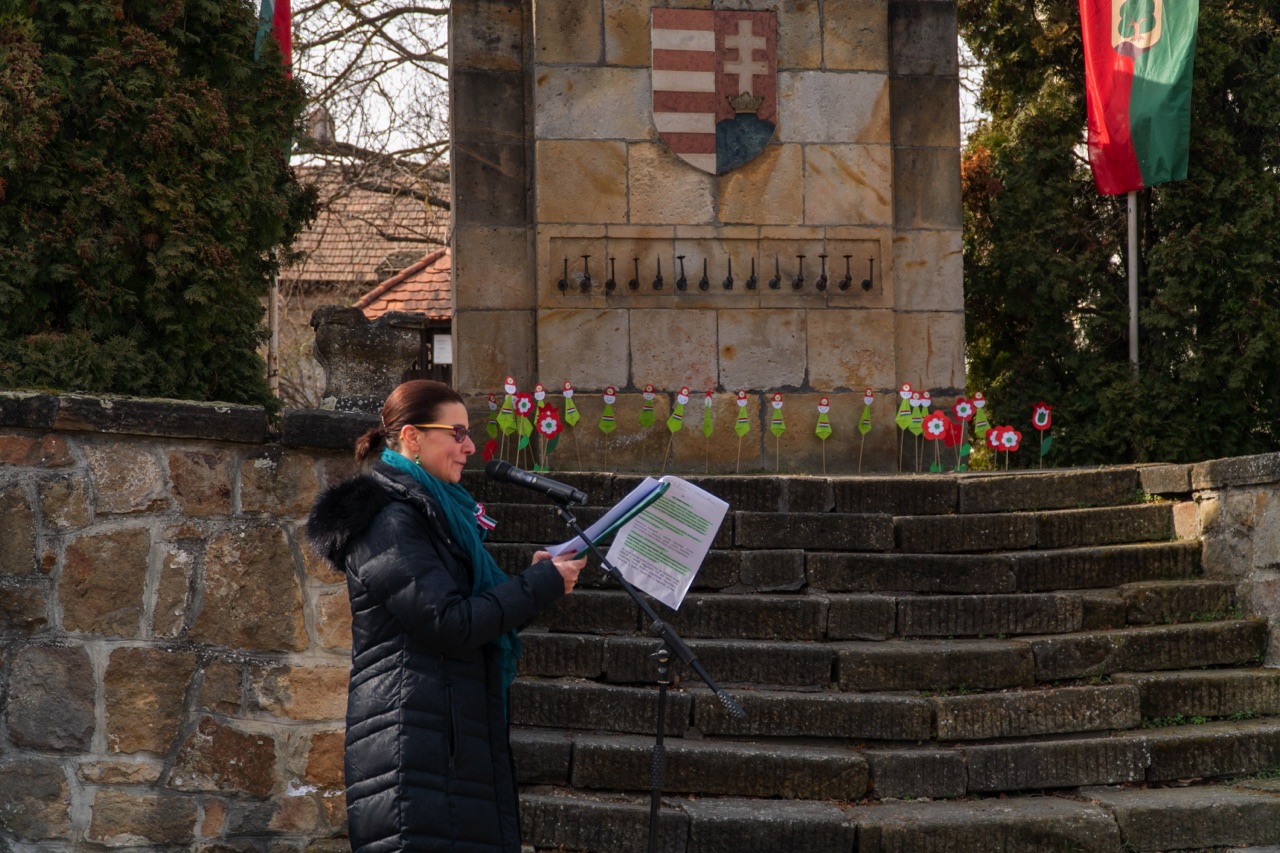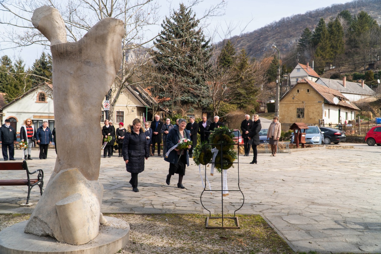 Az eredeti tervek és a hagyomány szerint a csobánkai iskola diákjainak műsorával ünnepelhettük volna március 15-ét a közösségi házban, de sajnos betegség miatt az iskola kénytelen volt lemondani az eseményt a múlt hét végén, ezért a Béke út és a Vörösvári út találkozásánál lévő 1848-as emlékműnél zajlott le a megemlékezés. Itt hangzott el Kovács Vanda Csobánkán élő színművész rövid irodalmi műsora és itt osztotta meg nemzeti ünnepünkkel kapcsolatos gondolatait a hallgatósággal Völgyes József polgármester is. A rövid megemlékezés után koszorúkat helyeztek el a résztvevők az emlékműnél.