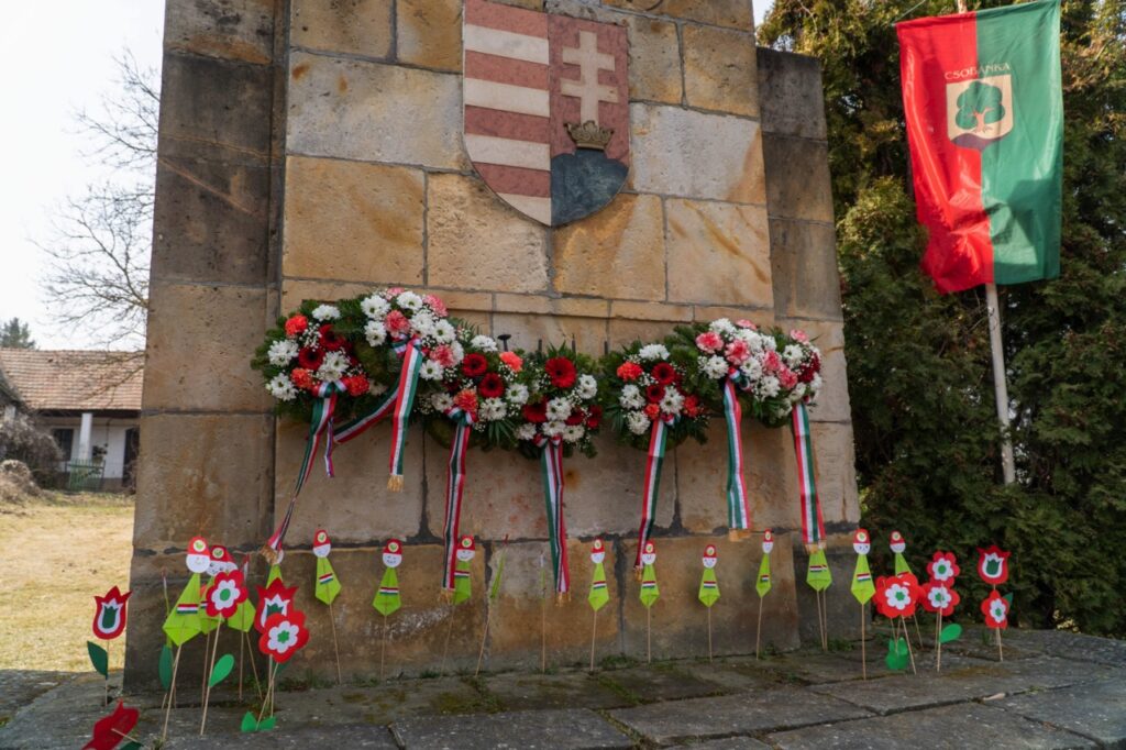 Az eredeti tervek és a hagyomány szerint a csobánkai iskola diákjainak műsorával ünnepelhettük volna március 15-ét a közösségi házban, de sajnos betegség miatt az iskola kénytelen volt lemondani az eseményt a múlt hét végén, ezért a Béke út és a Vörösvári út találkozásánál lévő 1848-as emlékműnél zajlott le a megemlékezés. Itt hangzott el Kovács Vanda Csobánkán élő színművész rövid irodalmi műsora és itt osztotta meg nemzeti ünnepünkkel kapcsolatos gondolatait a hallgatósággal Völgyes József polgármester is. A rövid megemlékezés után koszorúkat helyeztek el a résztvevők az emlékműnél.