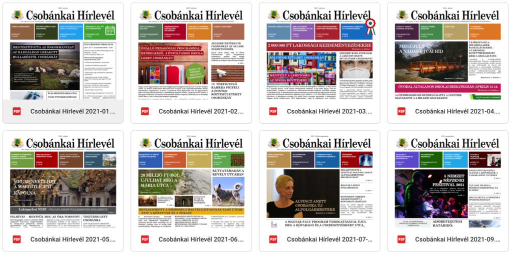 Többen jelezték az utóbbi időszakban, hogy az issuu.com publikációs platformra feltöltött Csobánkai Hírlevelek elérése nem problémamentes. Ennek problémának a megoldásaként a jelenlegi szerkesztőség által szerkesztett lapszámokat letölthető PDF formátumban is közzétettük megosztott Google Drive mappában. Az évfolyamonként különválogatott megosztott mappák elérhetőek mostantól a csobanka.online menüjéből.