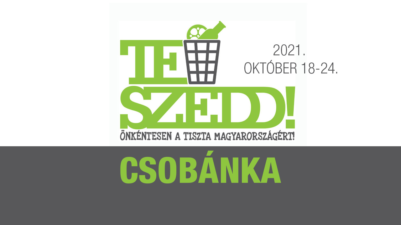A TeSzedd! – Önkéntesen a tiszta Magyarországért akció ma hazánk legnagyobb önkéntes mozgalma. Idén immár kilencedik alkalommal valósul meg. A szemétgyűjtési akció keretében szerte az országban „nagytakarítanak” a TeSzedd! önkéntesei. Csobánka idén is csatlakozik az akcióhoz. Helyi civilek koordinálásával, a település több pontján önkéntes szemétszedést szerveznek, együttműködésben a helyi szervezetekkel, és várják a jelentkezőket, akik megtisztítanának egy-egy területet.