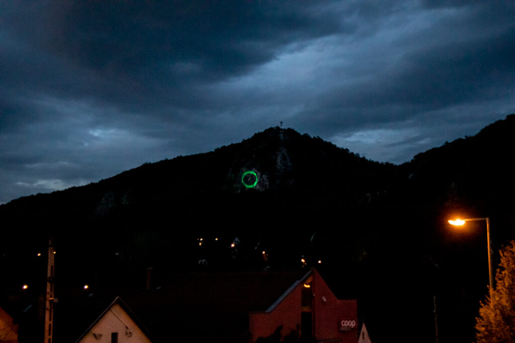 Szerda este színes fények voltak láthatóak az Oszoly sziklán és környékén. Ennek oka a holnapi Online Majális eddig be nem jelentett záró műsorszámának főpróbája volt. Május 1-én sötétedés után egy órán keresztül különféle látványos fényekkel fogjuk feldobni a falu éjszakai látképét.