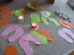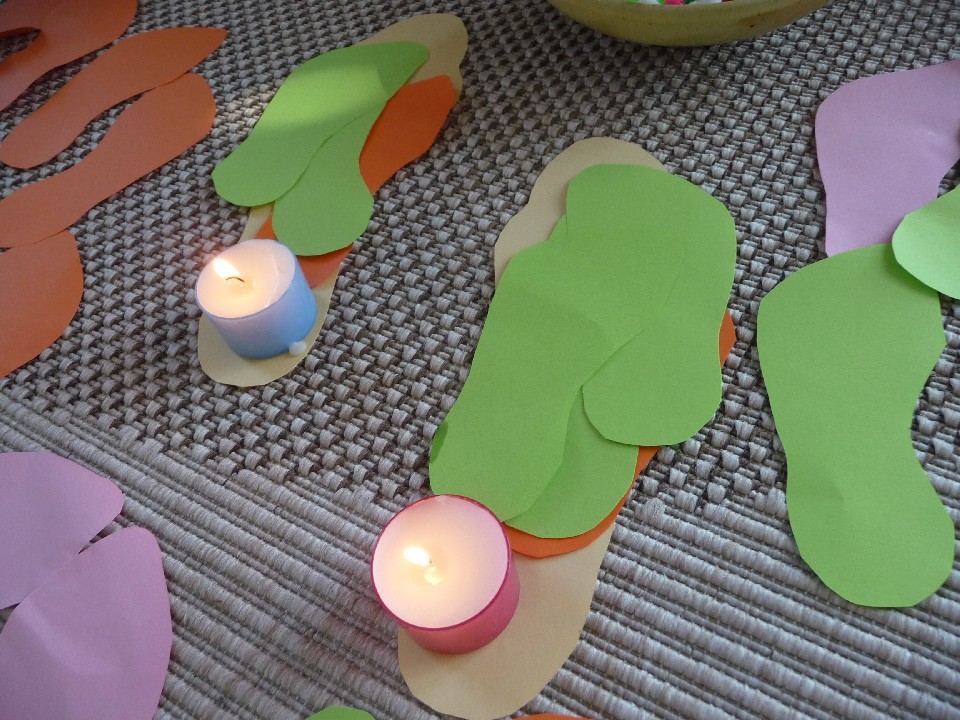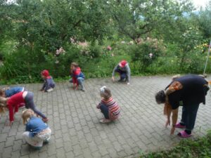 Ez idő alatt hitoktatóink és fiatal segítőtársaik a gyerekeknek ugyancsak a kapcsolatformákat mutatták be történetek, bábozás, játékok és kézműves foglalkozás segítségével. Délutánonként az udvaron a szülő-gyermek közös alkotás öröme kapott teret társasjátékok, ugrálóvár, foltvarrás, gipszformák díszítése és hasonló kreativitást fejlesztő aktivitások formájában. Csodálatos volt figyelni, milyen formáló és megerősítő hatása van a közös alkotásoknak, a formák adta szépség örömének. Minden napot a katolikus templomban esti imával zártunk.