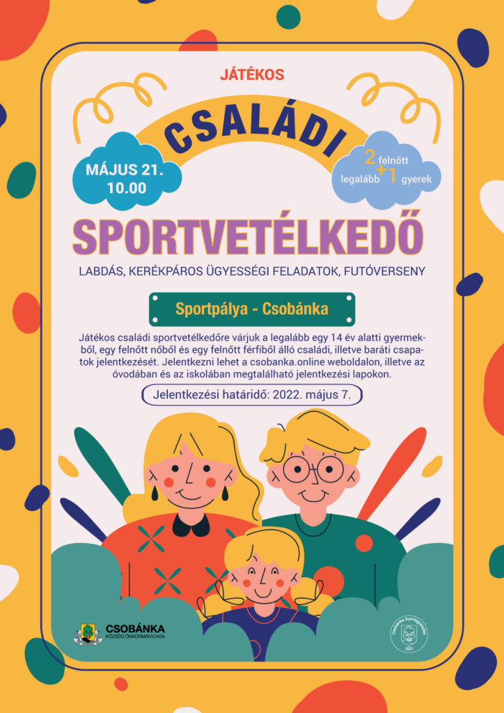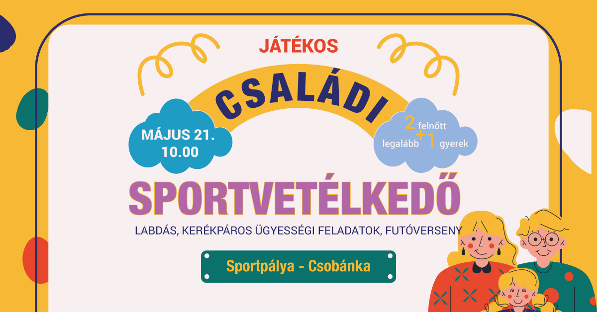Labdás, kerékpáros ügyességi feladatok, futóverseny. Játékos családi sportvetélkedőre várják május 21-én a legalább egy 14 év alatti gyermekből, egy felnőtt nőből és egy felnőtt férfiből álló családi, illetve baráti csapatok jelentkezését. Jelentkezni lehet a csobanka.online weboldalon az alábbi űrlapon, illetve az óvodában és az iskolában megtalálható jelentkezési lapokon. A jelentkezéseket május 7-ig várják.
