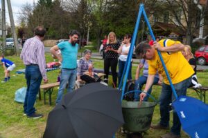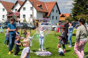 A kellemes tavaszi napsütésben sokan látogattak ki a sportpályára a délelőttől késő délutánig tartó rendezvényre. A színpadi programok mellett közösségi sütés-főzést és kézműves bemutatókat hirdettek meg, valamint a Virgonckodók Játékpark fajátékaival és buborék játszójával játszhattak a gyerekek. A Csobánka SE által szervezett kispályás focin egész nap meccseket játszottak a színpad mellett felrajzolt pályán és bárki próbára tehette a tudását a rögtönzött 11-es rúgó versenyen.
