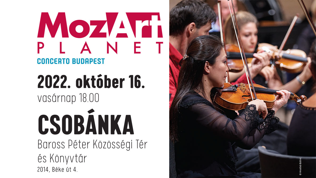 A Mozart Planet programsorozat egyik új őszi helyszíne a Baross Péter Közösségi Tér és Könyvtár. Október 14-16. között, péntektől vasárnapig újabb hét helyszínen rendez ingyenes koncertsorozatot Mozart műveiből a Concerto Budapest szimfonikus zenekar. A Mozart Planet program augusztusban a Balaton menti településeken indult el nyolc teltházas koncerttel, az őszi folytatásban Esztergomban a Bazilikában és a Ferences templomban, Zsámbékon, Veresegyházon, Pomázon, Fóton a Gyermekközpontban, valamint Csobánkán várják a közönséget a zenekari- és kamaraelőadások.