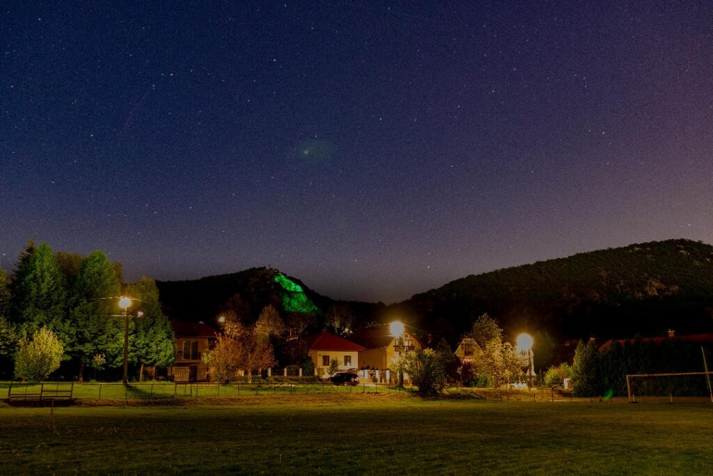 A Csobánkai Online Majális záró eseményeként lézeres fényjáték világította meg az Oszoly-sziklát.