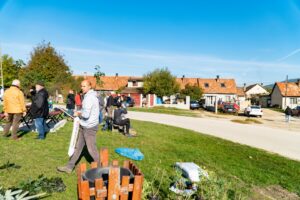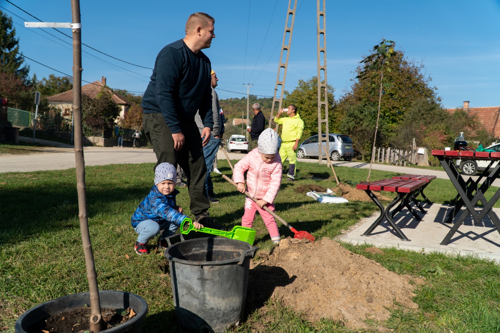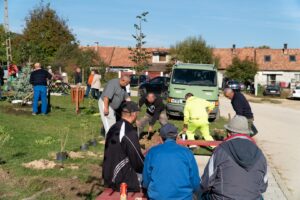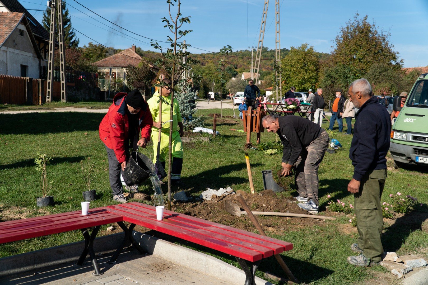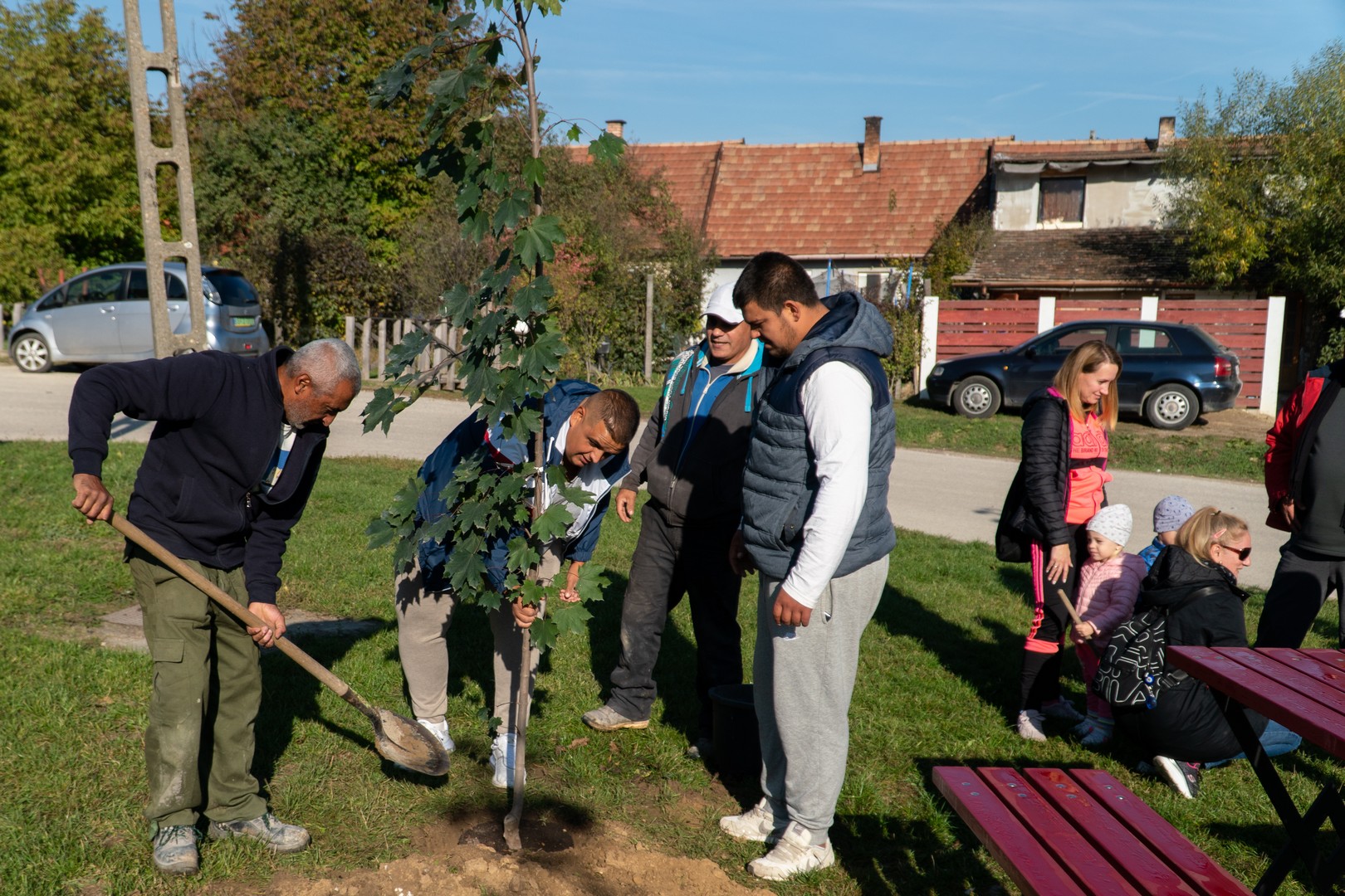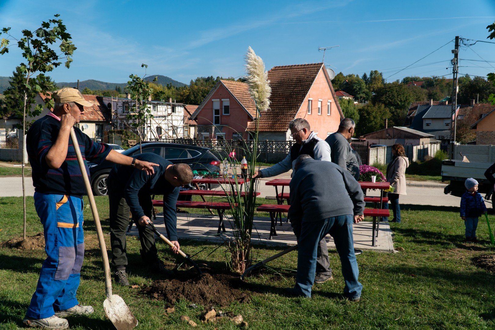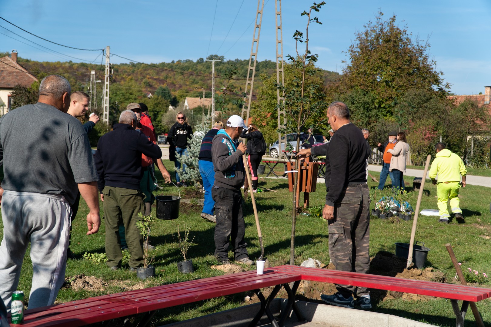 Horváth György elnök felhívására sokan érkeztek október 17-én vasárnap délelőtt a Roma Nemzetiségi Önkormányzat által szervezett virágültetésre, parkosításra a Plandics térre. A környéken élők mellett a falu távolabbi részeiről is érkeztek önkéntesek, önkormányzati képviselők és polgármester is részt vettek a kellemes napsütésben zajló kertészeti munkában.